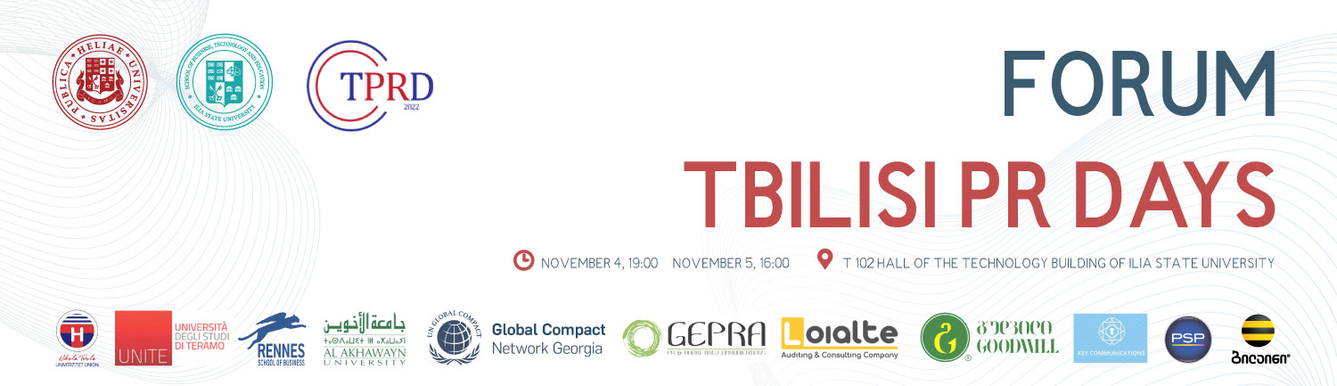 “Tbilisi PR Days”, the first international forum in the field of communication in Georgia, which is organized by the students of the Master’s program in Public Relations of Ilia State University, will be held on November 4-5.