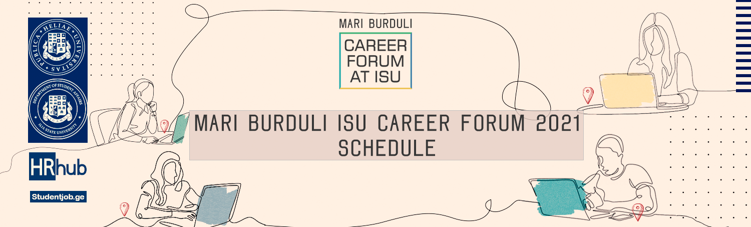 ISU is organizing a series of online meetings with potential employers within the frames of the Mari Burduli ISU Career Forum. You will have an opportunity to learn more about job openings and requirements. Meetings will be held in English.