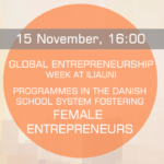 On November 15, at 16:00, within the Global Entrepreneurship Week, Danish lecturer of Pedagogy, Anette Wahlgren Ipsen, will deliver a public lecture on the topic “Programmes in the Danish School System fostering female entrepreneurs.”