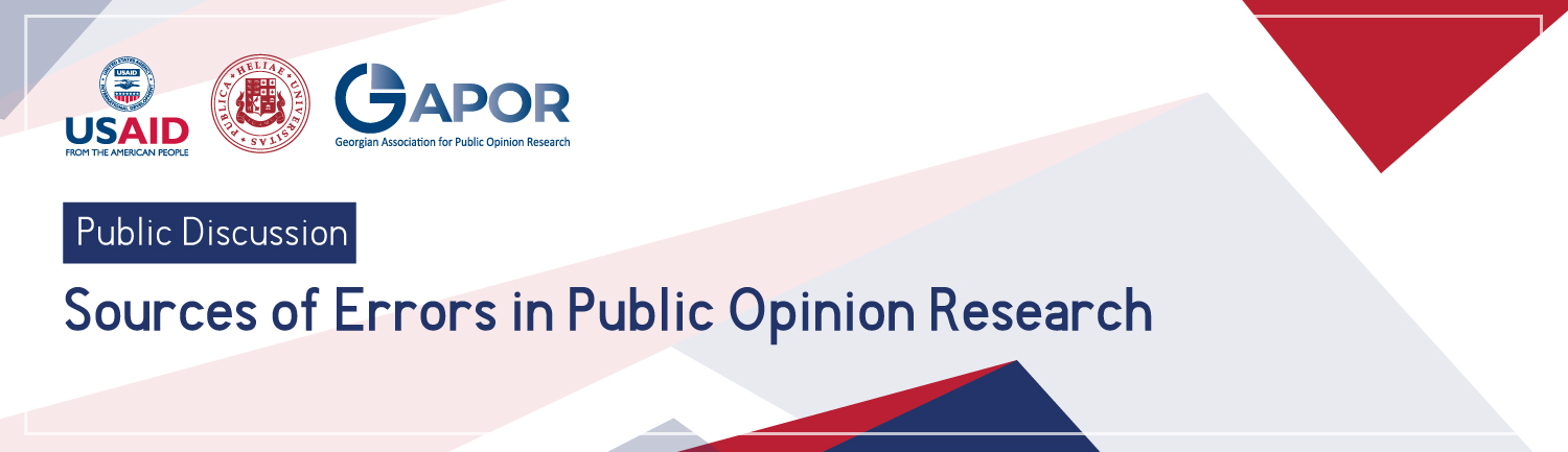 The discussion will revolve around the issues related to the types of errors, including sampling, non-response, and measurement errors. The speakers will also discuss the recommendations that need to be considered to formulate a methodologically sound research design. The members of the Georgian Association for Public Opinion Research, research organizations, and researchers will participate in the public discussion.