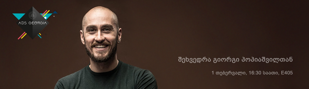 1-ლ თებერვალს, 16:30 საათზე, ილიას სახელმწიფო უნივერსიტეტის E405 აუდიტორიაში ADS Georgia-ს ფარგლებში გაიმართება შეხვედრა გიორგი პოპიაშვილთან.