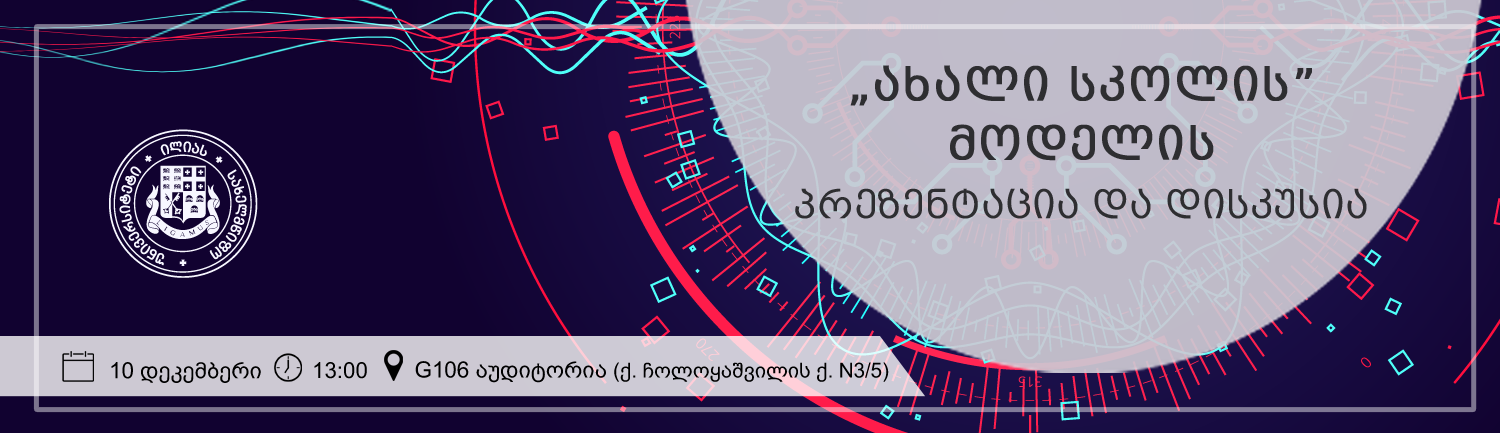 10 დეკემბერს, 13:00 საათზე, ილიას სახელმწიფო უნივერსიტეტის G106 აუდიტორიაში ინოვაციური განათლების კვლევითი ცენტრის ინიციატივით გაიმართება შეხვედრა ეროვნული სასწავლო გეგმების დეპარტამენტთან, რომელიც წარმოადგენს „ახალი სკოლის“ მოდელს.