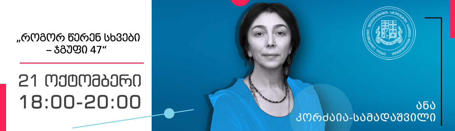 21 ოქტომბერს, 18:00 საათზე, ილიას სახელმწიფო უნივერსიტეტის წიგნის სახლში „ლიგამუსი“ მწერალი ანა კორძაია-სამადაშვილი გამართავს ლექციას თემაზე: „როგორ წერენ სხვები – ჯგუფი 47“. ვერავინ ვერავის ასწავლის, რა და როგორ უნდა წეროს. მხოლოდ იმის თქმა შეგვიძლია, რა არ უნდა გააკეთოს ავტორმა. ესაა და ეს… – ამ და სხვა საკითხებზე ესაუბრება მწერალი სტუდენტებს.