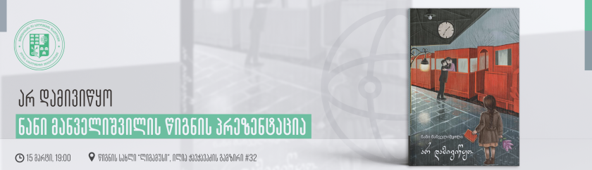 15 მარტს, 19:00 საათზე, წიგნის სახლში „ლიგამუსი“ ილიას სახელმწიფო უნივერსიტეტის მეცნიერებათა და ხელოვნების ფაკულტეტის მოწვეული ლექტორი ნანი მანველიშვილი გამართავს თავისი რომანის „არ დამივიწყო“ პრეზენტაციას.