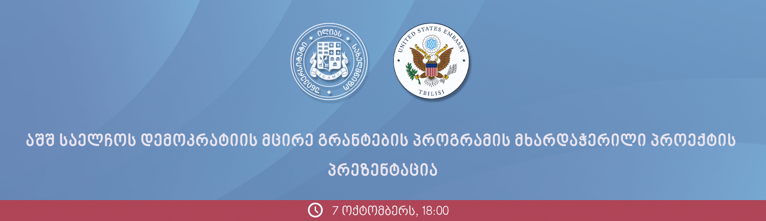 7 ოქტომბერს, 18:00 საათზე, წიგნის სახლში „ლიგამუსი“ გაიმართება საქართველოში ამერიკის შეერთებული შტატების საელჩოს დემოკრატიის მცირე გრანტების პროგრამის მიერ მხარდაჭერილი პროექტის „საჯარო სფეროს რეკონსტრუქცია საქართველოში“ პრეზენტაცია.