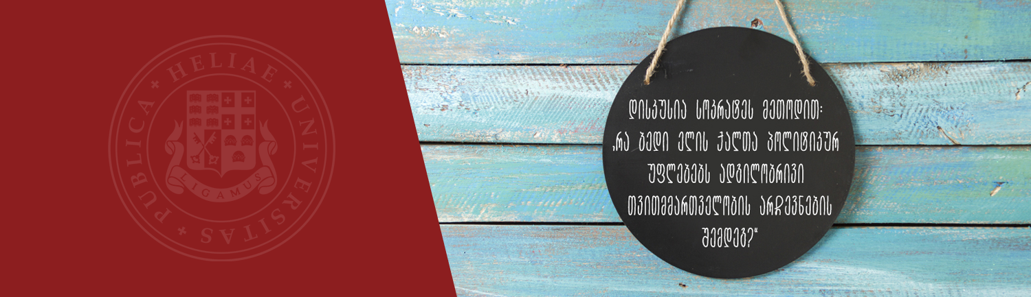 30 ოქტომბერს, 18:00 საათზე, ილია სახელმწიფო უნივერსიტეტის A101 აუდიტორიაში ილიაუნის სამართლის სკოლის ადამიანის უფლებათა მიმართულების ორგანიზებით გაიმართება დისკუსია სოკრატეს მეთოდით. დისკუსიის თემაა:„რა ბედი ელის ქალთა პოლიტიკურ უფლებებს ადგილობრივი თვითმმართველობის არჩევნების შემდეგ?“