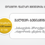 დოქტორ ფალკო შმიდერის საჯარო ლექცია: ვალტერ ბენიამინი – „პასაჟების პროექტი“, “ისტორიის ცნების შესახებ”