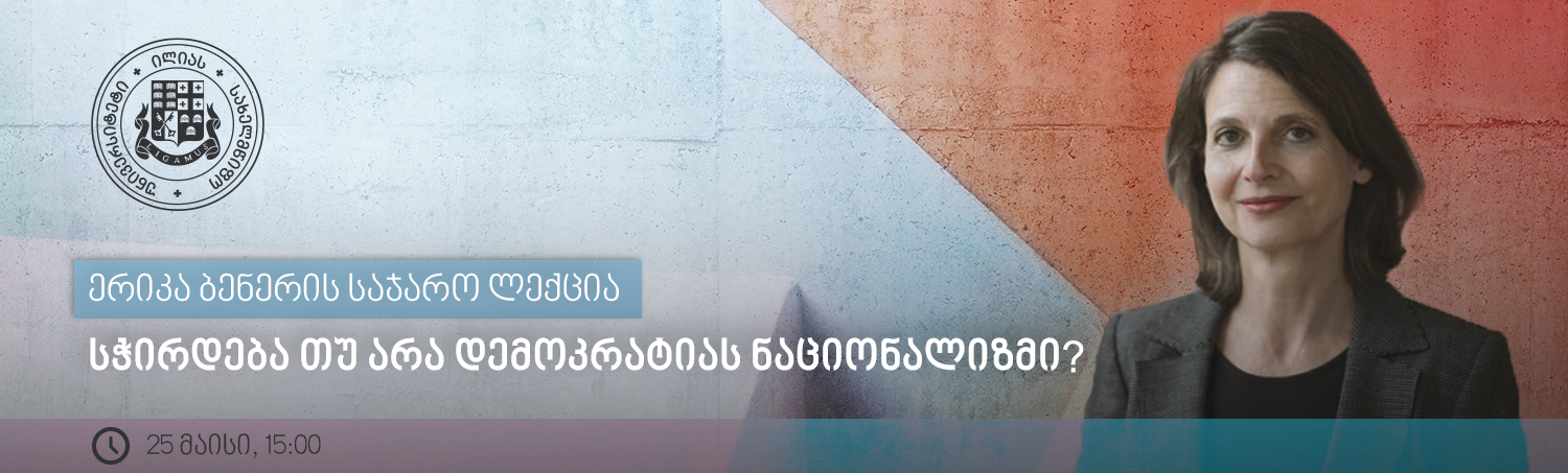 25 მაისს, 15:00 საათზე, ილიას სახელმწიფო უნივერსიტეტში გაიმართება მწერლისა და მკვლევრის ერიკა ბენერის ლექცია „სჭირდება თუ არა დემოკრატიას ნაციონალიზმი?“