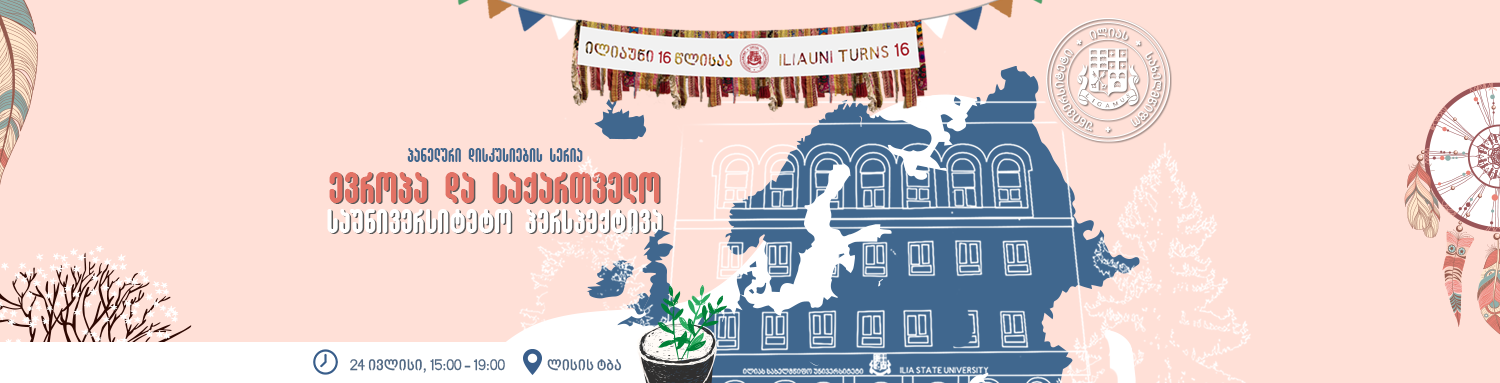 24 ივლისს, 15:00-დან 19:00 საათის ჩათვლით, ილიას სახელმწიფო უნივერსიტეტის 16 წლის იუბილესადმი მიძღვნილი ღონისძიებების ფარგლებში ილიაუნის პროფესორები, მკვლევრები გამართავენ პანელური დისკუსიების სერიას თემაზე: „ევროპა და საქართველო: საუნივერსიტეტო პერსპექტივა“.