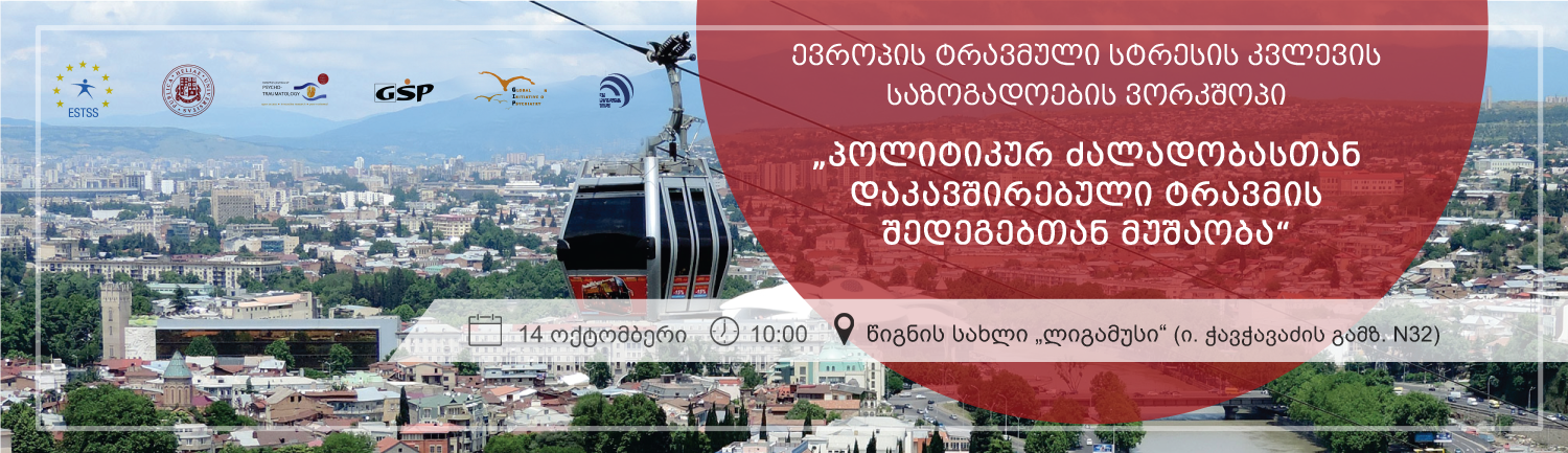 13-14 ოქტომბერს, 10:00 საათზე, ილიას სახელმწიფო უნივერსიტეტში გაიმართება ევროპის ტრავმული სტრესის კვლევის საზოგადოების ვორკშოპი „პოლიტიკურ ძალადობასთან დაკავშირებული ტრავმის შედეგებთან მუშაობა“.