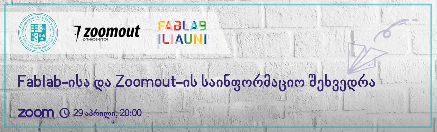 29 აპრილს, 20:00 საათზე, ფაბლაბ ილიაუნი და ზუმაუთი დისტანციურად, ზუმის პლატფორმის საშუალებით, გამართავს საინფორმაციო შეხვედრას მათი საქმიანობისა და დანიშნულების შესახებ.