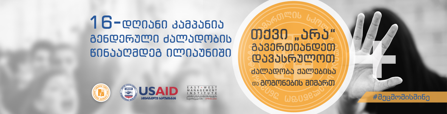 ილიას სახელმწიფო უნივერსიტეტის სამართლის სკოლის ადამიანის უფლებათა მიმართულება აღმოსავლეთ-დასავლეთის მართვის ინსტიტუტის (EWMI) პროგრამასთან – „კანონის უზენაესობის მხარდაჭერა საქართველოში“ (USAID/PROLoG) – თანამშრომლობით უერთდება გენდერული ძალადობის აღმოფხვრის 16-დღიან გლობალურ კამპანიას.