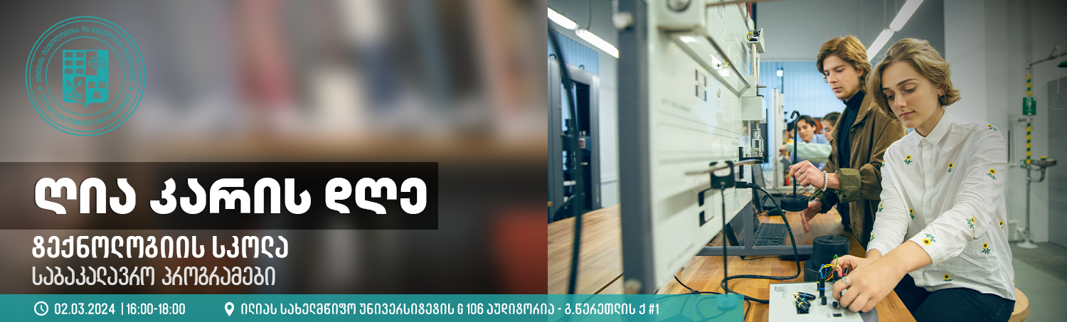 2 მარტს, 16:00 საათზე, ილიას სახელმწიფო უნივერსიტეტის G106 აუდიტორიაში ილიაუნის ტექნოლოგიის სკოლის პროგრამებით დაინტერესებული უფროსკლასელებისა და აბიტურიენტებისთვის გაიმართება ღია კარის დღე.
