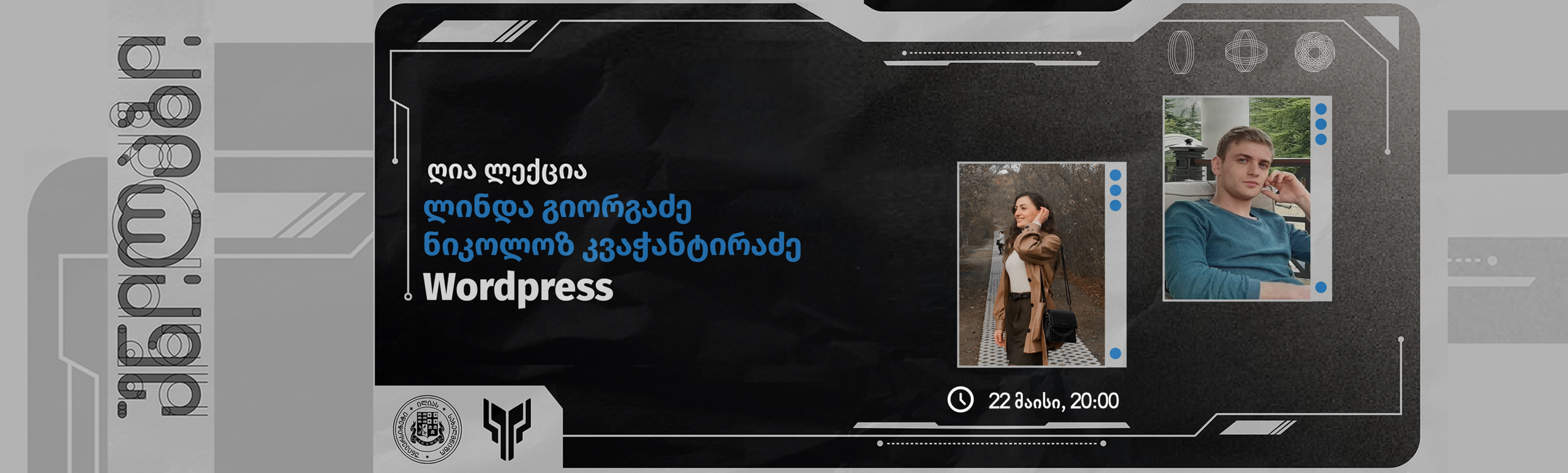 22 მაისს, 20:00 საათზე, ილიაუნის კიბერლაბორატორია უნილაბის ყოფილი სტუდენტები და ახლა უკვე ვორდპრესის სტაჟიორები გიამბობენ საკუთარი გამოცდილების შესახებ ვებდეველოპმენტის მიმართულებით, გაგიზიარებენ პრაქტიკულ რჩევებს, ისაუბრებენ პლატფორმის უპირატესობებსა და შესაძლებლობებზე ღია ლექციაზე ასევე გაიგებთ, როგორ გადადგა ვებდეველოპმენტის სფეროში პირველი ნაბიჯი და რა არის საჭირო ამისთვის.
