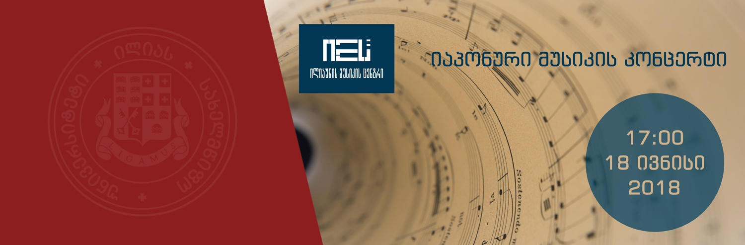 18 ივნისს, 17.00-ზე, ილიას სახელმწიფო უნივერსიტეტის B201 აუდიტორიაში ილიაუნის მუსიკის ცენტრის ინიციატივით გაიმართება იაპონური მუსიკის კონცერტი, რომელშიც მონაწილეობას მიიღებენ აშშ-ში მოღვაწე ცნობილი იაპონელი მევიოლინე, საერთაშორისო კონკურსების ლაურეატი კენ აისო და უკრაინელი პიანისტი ვალერია მარგოვსკაია.