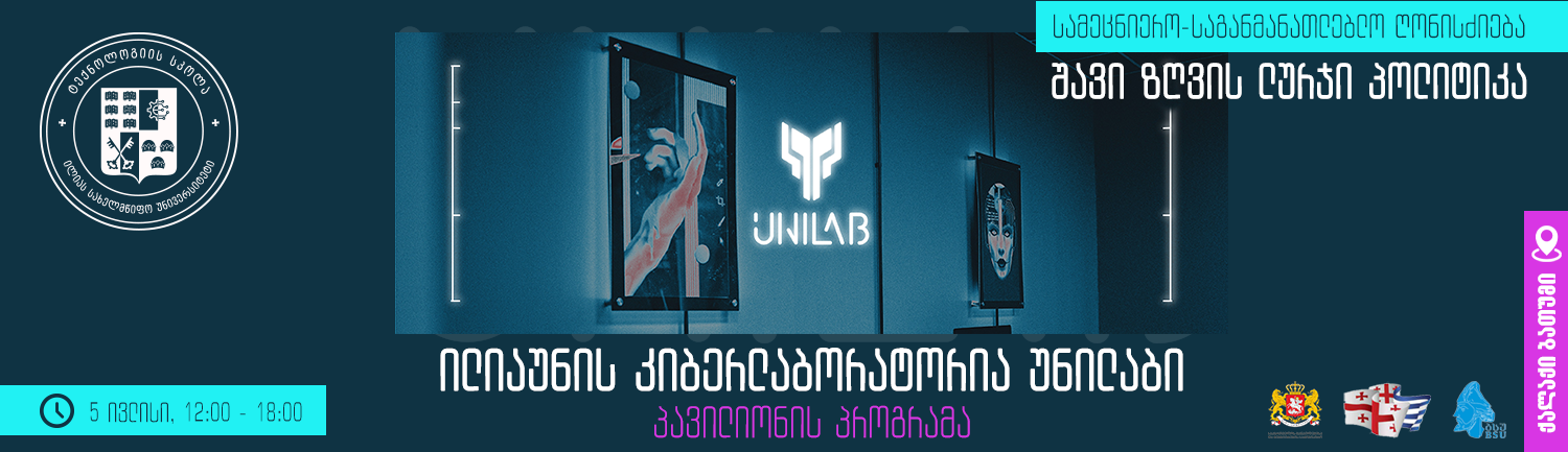 5 ივლისს ილიას სახელმწიფო უნივერსიტეტის კიბერლაბორატორია უნილაბი მონაწილეობას მიიღებს სამეცნიერო-საგანმანათლებლო ღონისძიებაში „შავი ზღვის ლურჯი პოლიტიკა“, რომელიც საქართველოს განათლებისა და მეცნიერების სამინისტროს, აჭარის ავტონომიური რესპუბლიკის განათლების, კულტურისა და სპორტის სამინისტროსა და ბათუმის შოთა რუსთაველის სახელმწიფო უნივერსიტეტის ორგანიზებით გაიმართება ქალაქ ბათუმში.