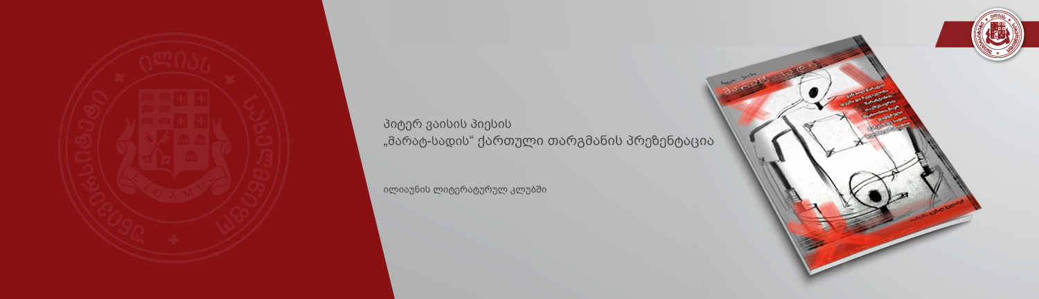 10 მაისს, 19:00 საათზე, წიგნის სახლში „ლიგამუსი“ ილიას სახელმწიფო უნივერსიტეტის ლიტერატურული კლუბის ორგანიზებით გაიმართება პეტერ ვაისის განთქმული პიესის „მარატ-სადის“ ქართული თარგმანის პრეზენტაცია. პიესა თარგმნა ჯემალ ჭელიძემ და გამოსცა ილიას სახელმწიფო უნივერსიტეტის გამომცემლობამ.