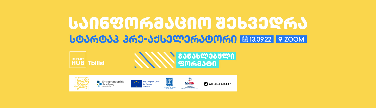 პრეაქსელერაციის პროგრამაზე განაცხადების მიღება დაწყებულია და გაგრძელდება 18 სექტემბრის ჩათვლით. განაცხადის შესავსებად გადადით ბმულზე: https://bit.ly/3QIcWbT.