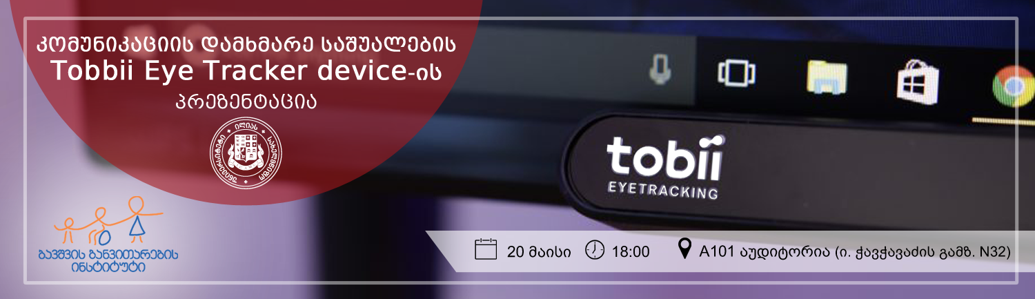 20 მაისს, 18:00 საათზე ილიას სახელმწიფო უნივერსიტეტის A101 აუდიტორიაში გაიმართება კომუნიკაციის დამხმარე საშუალების, Tobbii Eye Tracker device-ის, პრეზენტაცია, რომელსაც გაუძღვება პროფესიონალი ტექნიკური სპეციალისტი დუბაიდან კამილე მატა (Camille Matta).