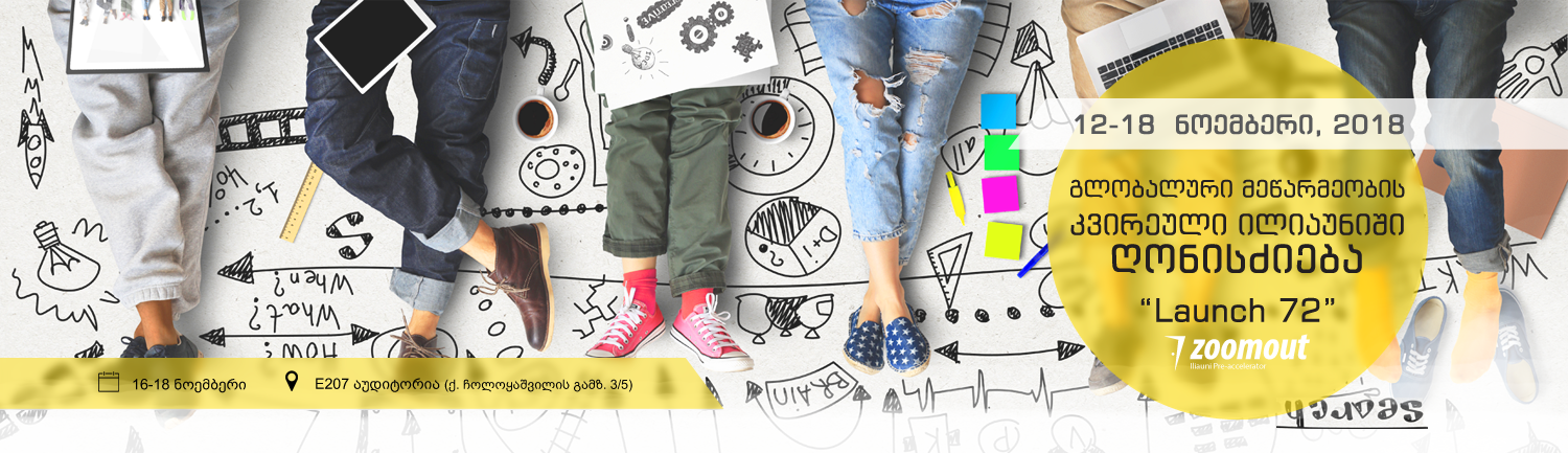 16-18 ნოემბერს გლობალური მეწარმეობის კვირეულის ფარგლებში ილიას სახელმწიფო უნივერსიტეტის პრე-აქსელერატორ ზუმაუთის ორგანიზებით გაიმართება ღონისძიება ”Launch 72”.