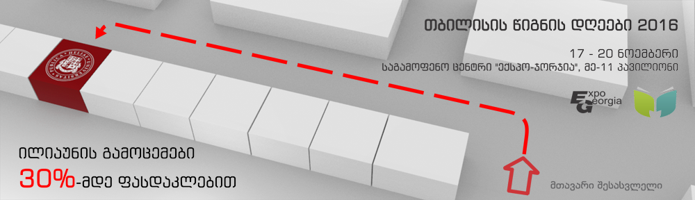 17-20 ნოემბერს,11:00-დან19:00 საათამდე, საგამოფენო კომპლექსის – „ექსპოჯორჯიას“– მე–11პავილიონში გაიმართება თბილისის წიგნის დღეები2016″, რომლის ფარგლებშიც ილიას სახელმწიფო უნივერსიტეტის წიგნის სახლი „ლიგამუსი“ ილიაუნის გამოცემებს 30%-იანი ფასდაკლებით შემოგთავაზებთ.