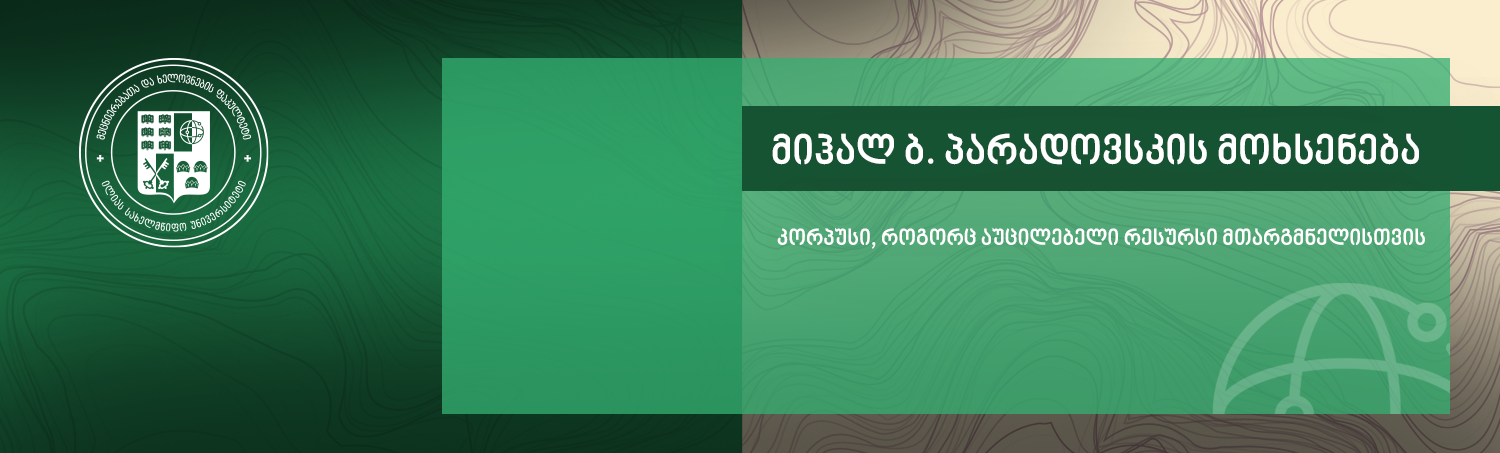 4 ნოემბერს, 14:30 საათზე, ილიას სახელმწიფო უნივერსიტეტის მეცნიერებათა და ხელოვნების ფაკულტეტის ორგანიზებით გაიმართება მიჰალ ბ. პარადოვსკის, ვარშავის უნივერსიტეტის გამოყენებითი ლინგვისტიკის ასოცირებული პროფესორის, მოხსენება თემაზე: „კორპუსი, როგორც აუცილებელი რესურსი მთარგმნელისთვის“.