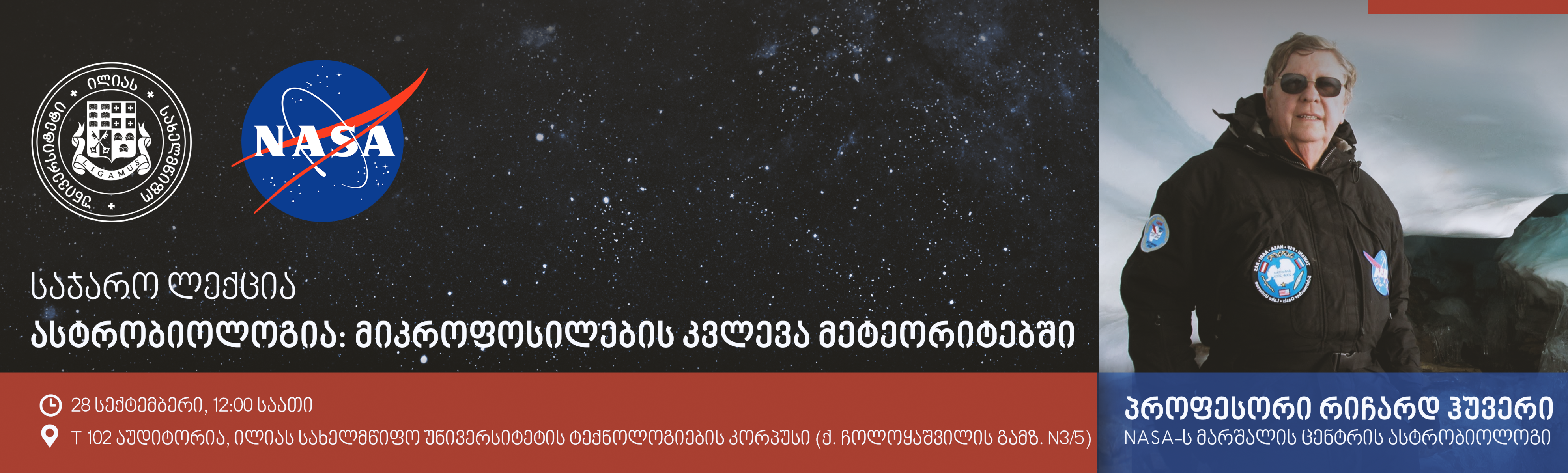 28 სექტემბერს, 12:00 საათზე, გაიმართება ცნობილი ამერიკელი ასტროფიზიკოსისა და ასტრობიოლოგის, პროფესორ რიჩარდ ჰუვერის (NASA) საჯარო ლექცია „ასტრობიოლოგია: მიკროფოსილების კვლევა მეტეორიტებში“.