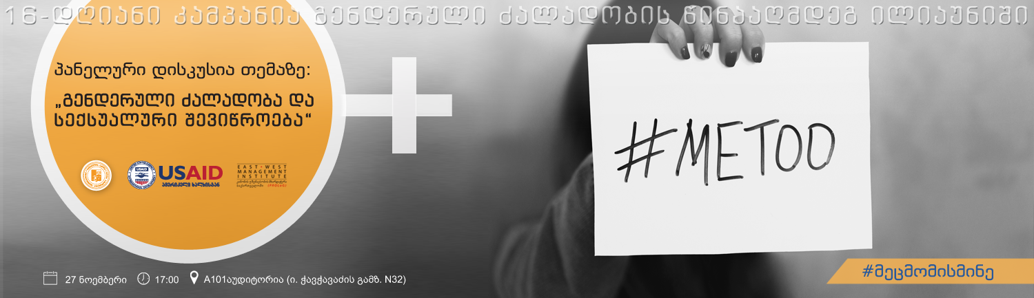 27 ნოემბერს, 17:00 საათზე, ილიას სახელმწიფო უნივერსიტეტის წიგნის სახლში „ლიგამუსი“ გაიმართება პანელური დისკუსია თემაზე: „გენდერული ძალადობა და სექსუალური შევიწროება“.