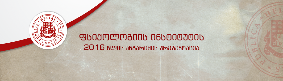 31 მაისს, 18:30 საათზე, ილიას სახელმწიფო უნივერსიტეტის E207 აუდიტორიაში გაიმართება დიმიტრი უზნაძის ფსიქოლოგიის ინსტიტუტის 2016 წლის საქმიანობის ანგარიშის პრეზენტაცია. ასევე, წარმოდგენილი იქნება კითხვარების ადაპტაციის პროექტის ვებგვერდის პრეზენტაცია და უმცირესობებისადმი დამოკიდებულების ორი კვლევის შედეგები.