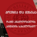 27 დეკემბერს, სამშაბათს, 19:00 საათზე, რატი ამაღლობელის „სიტყვის სახელოსნო“ პოეზიისა და ელექტრონული მუსიკის საღამოზე გიწვევთ. პროექტი „პოეზია და რეციტაცია“ გოგი ძოძუაშვილის მუსიკისა და რატი ამაღლობელის პოეტური ტექსტების სინთეზს წარმოადგენს.