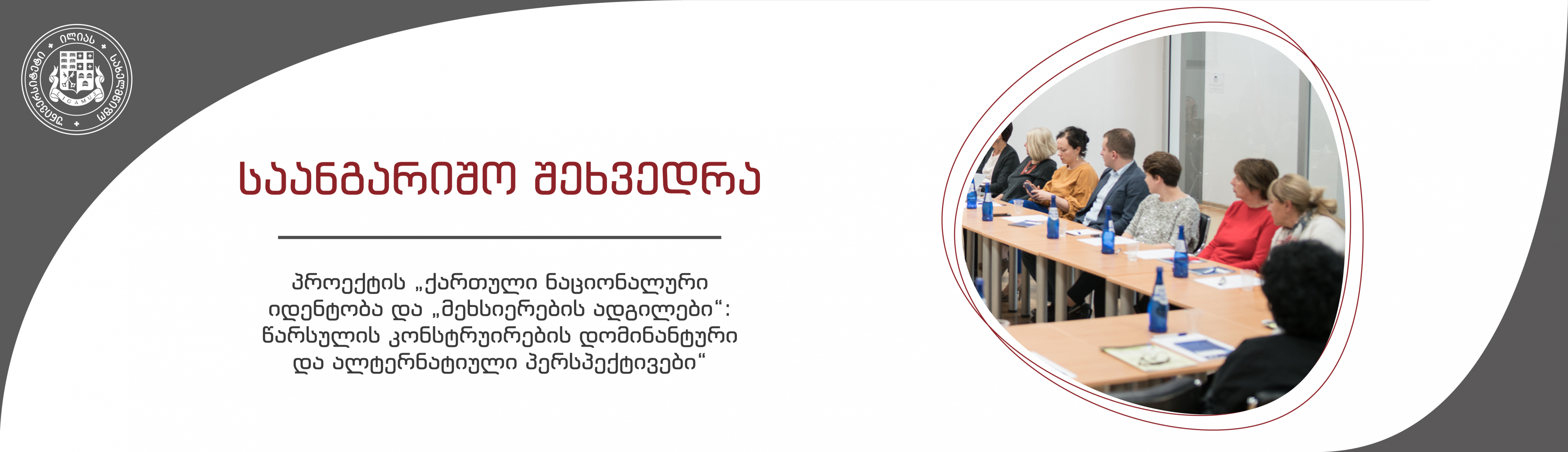 29 ივნისს, 17:00 საათზე, ილიას სახელმწიფო უნივერსიტეტის F303 აუდიტორიაში გაიმართება შოთა რუსთაველის ეროვნული სამეცნიერო ფონდის ფუნდამენტური კვლევების გრანტის პროექტის „ქართული ნაციონალური იდენტობა და „მეხსიერების ადგილები“: წარსულის კონსტრუირების დომინანტური და ალტერნატიული პერსპექტივები“ I საანგარიშო პერიოდის შემაჯამებელი სამუშაო შეხვედრა.