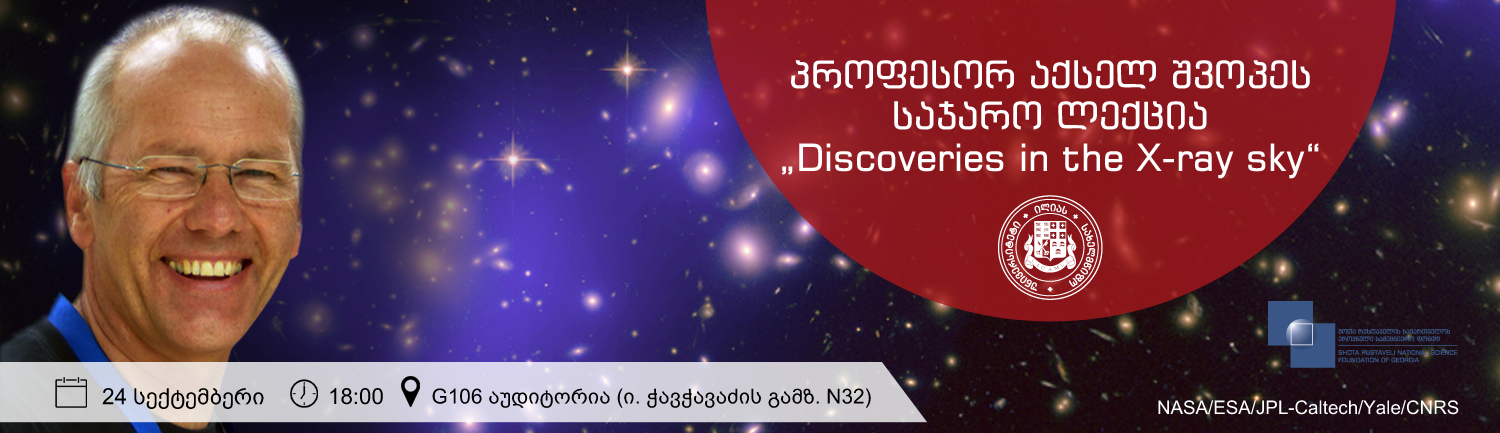 24 სექტემბერს, 18:00 საათზე, ილიას სახელმწიფო უნივერსიტეტის G106 აუდიტორიაში პოტსდამის ლაიბნიცის ასტროფიზიკის ინსტიტუტის რენტგენული ასტრონომიის კვლევითი ჯგუფის ლიდერი, პროფესორი აქსელ შვოპე გამართავს საჯარო ლექციას „Discoveries in the X-ray sky“ რენტგენულ ცაზე ახალი აღმოჩენების შესახებ.