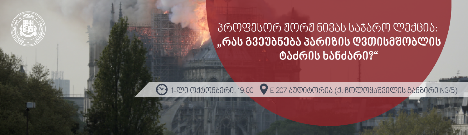 1-ლ ოქტომბერს, სამშაბათს, 19:00 საათზე, ილიაუნის E 207 აუდიტორიაში ილიას სახელმწიფო უნივერსიტეტის სამეცნიერო-კვლევითი ცენტრი რომანული ურთიერთგაგება. ინტერტექსტუალური დიალოგი და საქართველოს ფრანგული ინსტიტუტი გიწვევთ ფრანგი პროფესორის, ჟორჟ ნივას საჯარო ლექციაზე: Que nous dit l’incendie de Notre-Dame-de-Paris? –რას გვეუბნება პარიზის ღვთისმშობლის ტაძრის ხანძარი?