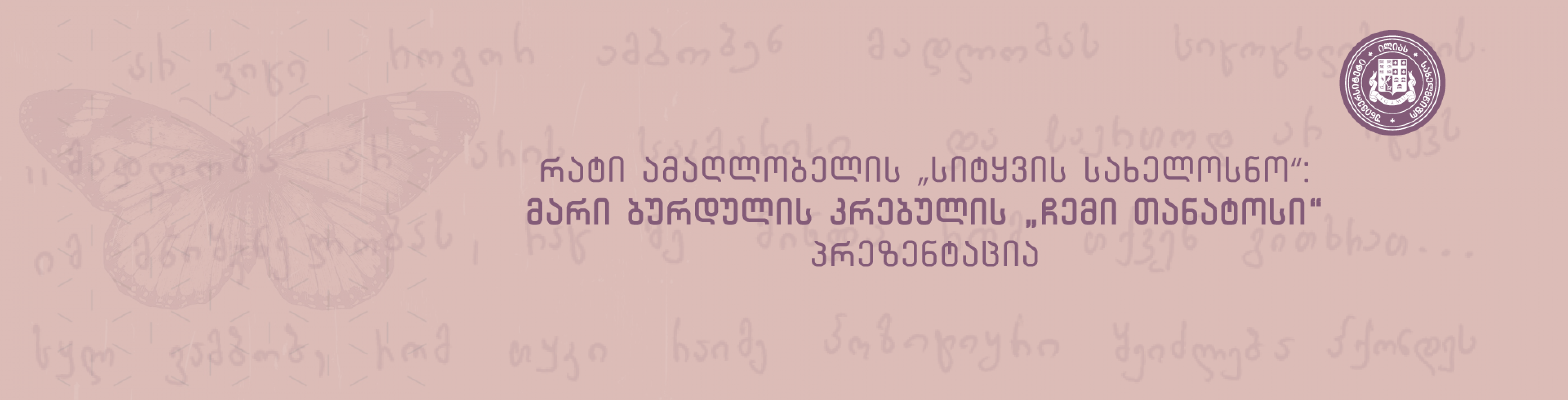 28 მაისს, სამშაბათს, 19:00 საათზე, ილიას სახელმწიფო უნივერსიტეტის B201 აუდიტორიაში რატი ამაღლობელის შეხვედრების ციკლის „სიტყვის სახელოსნოს“ ფარგლებში გაიმართება მარი ბურდულის კრებულის „ჩემი თანატოსი“ პრეზენტაცია.