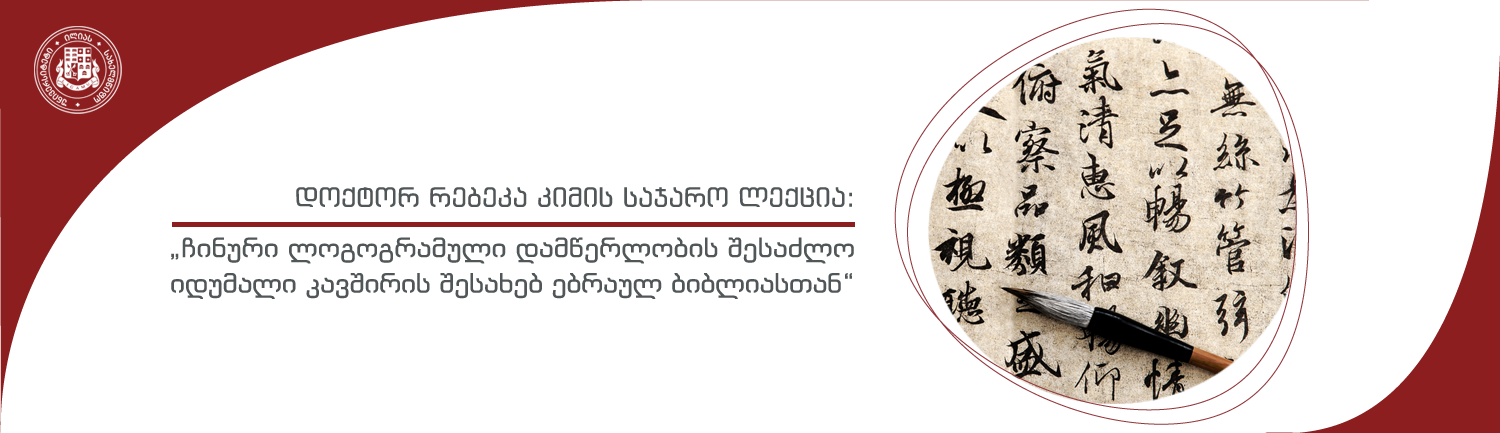 7 ნოემბერს, 17:00 საათზე, ილიას სახელმწიფო უნივერსიტეტის B 201 აუდიტორიაში გაიმართება დოქტორ რებეკა კიმის (ჰარვარდის უნივერსიტეტი) საჯარო ლექცია „ჩინური ლოგოგრამული დამწერლობის შესაძლო იდუმალი კავშირის შესახებ ებრაულ ბიბლიასთან“.