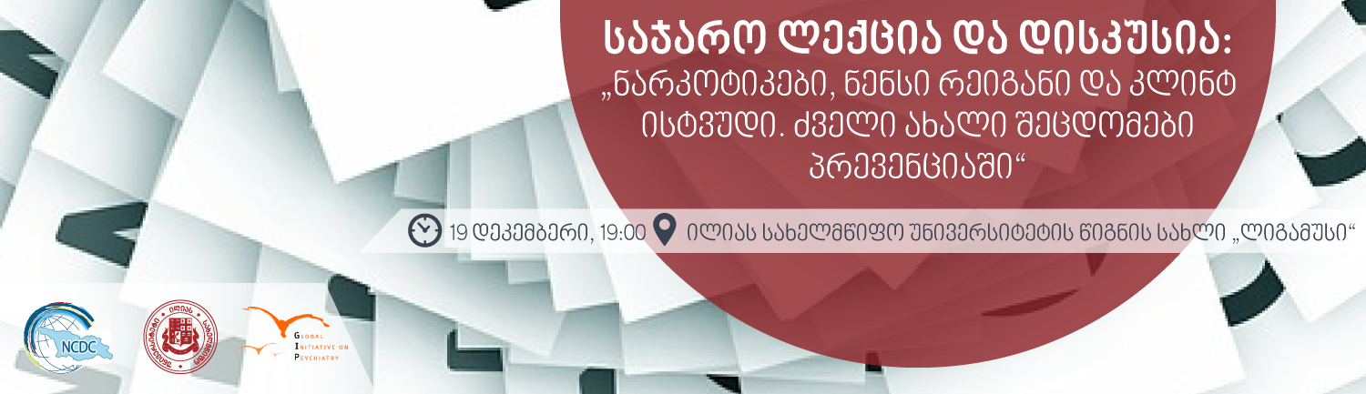 19 დეკემბერს, 19:00 საათზე, ილიას სახელმწიფო უნივერსიტეტის წიგნის სახლში „ლიგამუსი“ პროფესორები ჯანა ჯავახიშვილი და დავით ოთიაშვილი გამართაენ საჯარო ლექციასა და დისკუსიას თემაზე: „ნარკოტიკები, ნენსი რეიგანი და კლინტ ისტვუდი. ძველი ახალი შეცდომები პრევენციაში“.