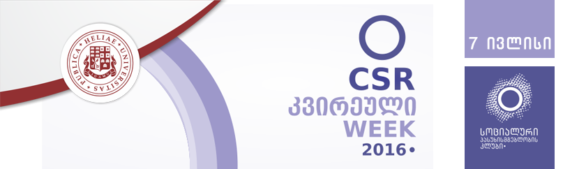 7 ივლისს, 12:00 საათზე, ილიას სახელმწიფო უნივერსიტეტის E 207 აუდიტორიაში, CSR კვირეულის ფარგლებში, გაიმართება საჯარო ლექცია თემაზე: „კორპორაციული სოციალური პასუხისმგებლობის თანამედროვე პრაქტიკა საქართველოში“. ლექციაზე განხილული იქნება კორპორაციული სოციალური პასუხისმგებლობის არსებული ქართული პრაქტიკა; გაიმართება დისკუსია აღნიშნული მიმართულებით არსებულ გამოწვევებსა და პერსპექტივებზე ჩვენს ქვეყანაში და განიხილება საქართველოს ადგილი საერთაშორისო პრაქტიკის და გლობალურ CSR რუკაზე.