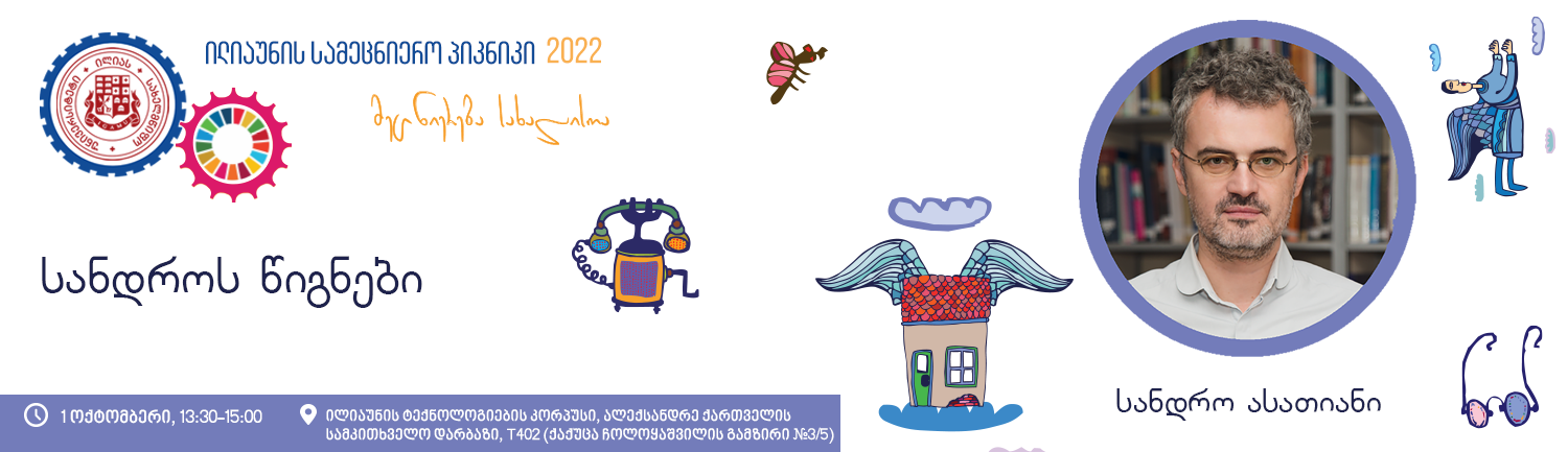 1-ელ ოქტომბერს, 13:30-15:00 საათამდე, ილიაუნის სამეცნიერო პიკნიკზე სანდრო ასათიანის წიგნის სახელოსნო უმასპინძლებს 5-9 წლის ბავშვებს. პატარებს შეუძლიათ გაეცნონ „სანდროს წიგნებს“.