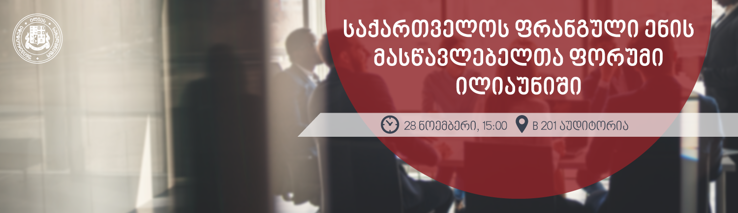 28 ნოემბერს, 15:00 საათზე, ილიას სახელმწიფო უნივერსიტეტის B 201 აუდიტორიაში გაიმართება მრგვალი მაგიდა ფრანგული ენის სწავლება ინოვაციური და კრეატიული მეთოდების გამოყენებით“.