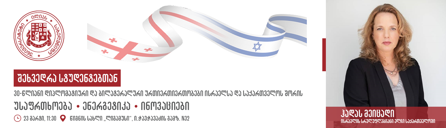 23 მარტს, 11:30 საათზე, წიგნის სახლში „ლიგამუსი“ ილიას სახელმწიფო უნივერსიტეტის სტუდენტებთან შეხვედრას გამართავს ისრაელის სრულუფლებიანი ელჩი საქართველოში ჰადას მეიცადი.
