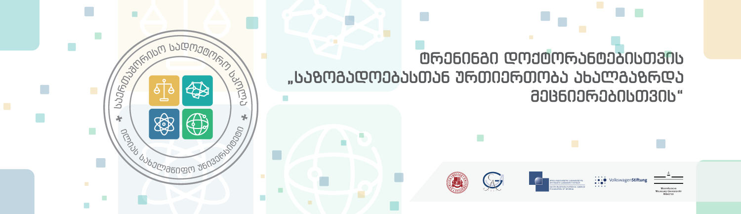 დოქტორანტებსა და პოსტდოქტორანტებს გეძლევათ შესაძლებლობა დაესწროთ გიოტინგენის უნივერსიტეტის საზოგადოებასთან ურთიერთობის განყოფილების ხელმძღვანელის, თომას რიხტერის ტრენინგს თემაზე: „საზოგადოებასთან ურთიერთობის მნიშვნელობა ახალგაზრდა მეცნიერთათვის“.