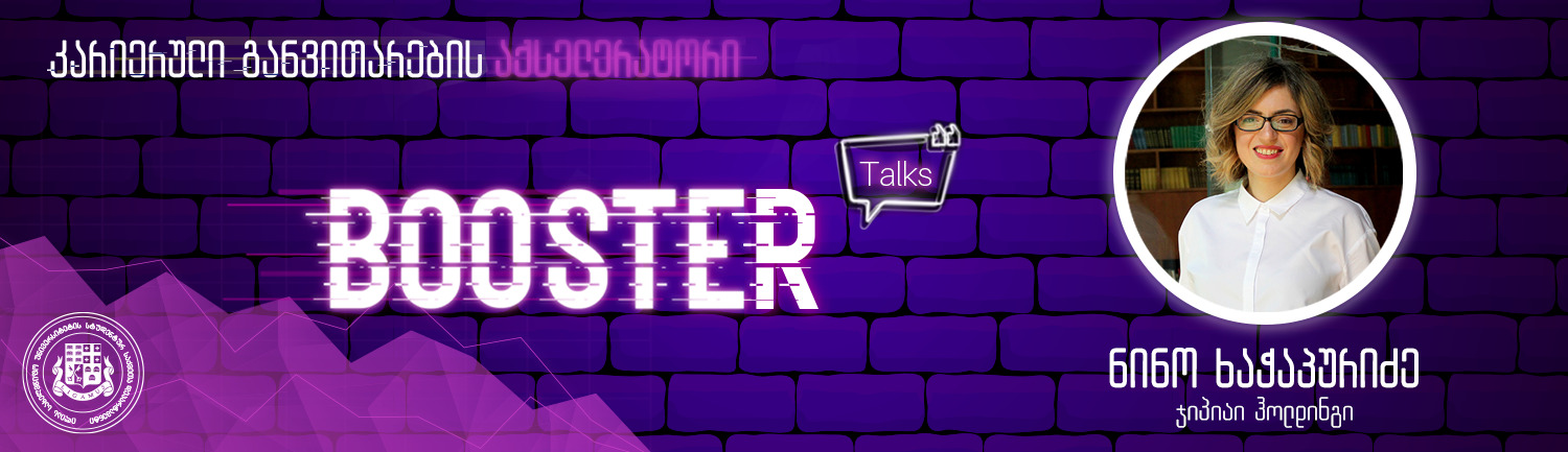 19 ივნისს, პარასკევს, 15:00 საათზე, BOOSTER Talks-ის სტუმარი იქნება „ჯიპიაი ჰოლდინგის” HR დეპარტამენტის უფროსი ნინო ხაჭაპურიძე.