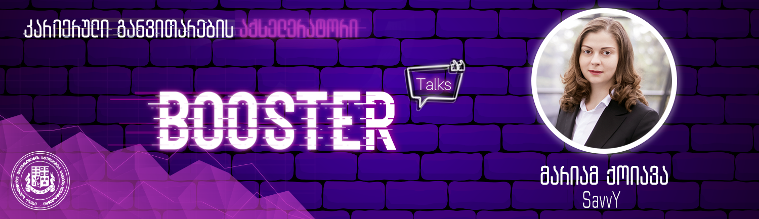 9 ივნისს, სამშაბათს, 15:00 საათზე, BOOSTER Talks-ის სტუმარი იქნება ბიზნესის საკონსულტაციო კომპანიის SavvY მმართველი პარტნიორი მარიამ ქოიავა.