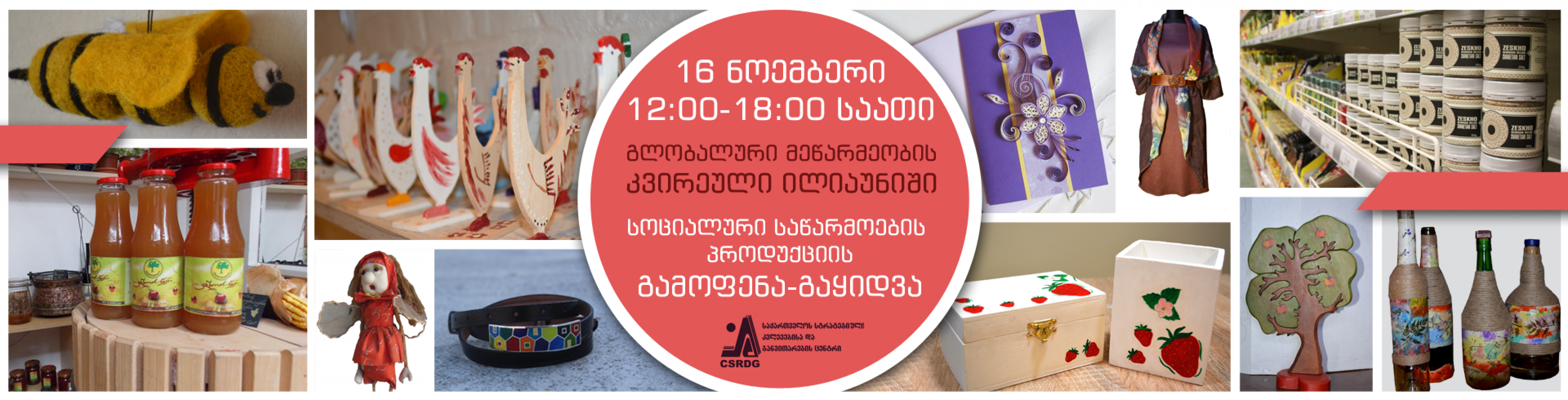 16 ნოემბერს, 12:00-დან 18:00 საათამდე, ილიას სახელმწიფო უნივერსიტეტის E207 აუდიტორიაში, გლობალური მეწარმეობის კვირეულის ფარგლებში, საქართველოს სტრატეგიული კვლევებისა და განვითარების ცენტრის მხარდაჭერით, გაიმართება სოციალური საწარმოების პროდუქციის გამოფენა-გაყიდვა.