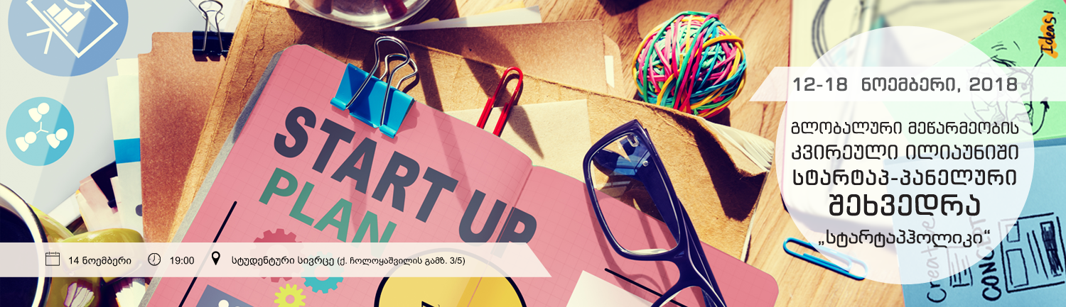 14 ნოემბერს, 19:00 საათზე, გლობალური მეწარმეობის კვირეულის ფარგლებში ილიას სახელმწიფო უნივერსიტეტის პრე-აქსელერატორ ზუმაუთის ორგანიზებით გაიმართება სტარტაპ-პანელური შეხვედრა „სტარტაპჰოლიკი“
