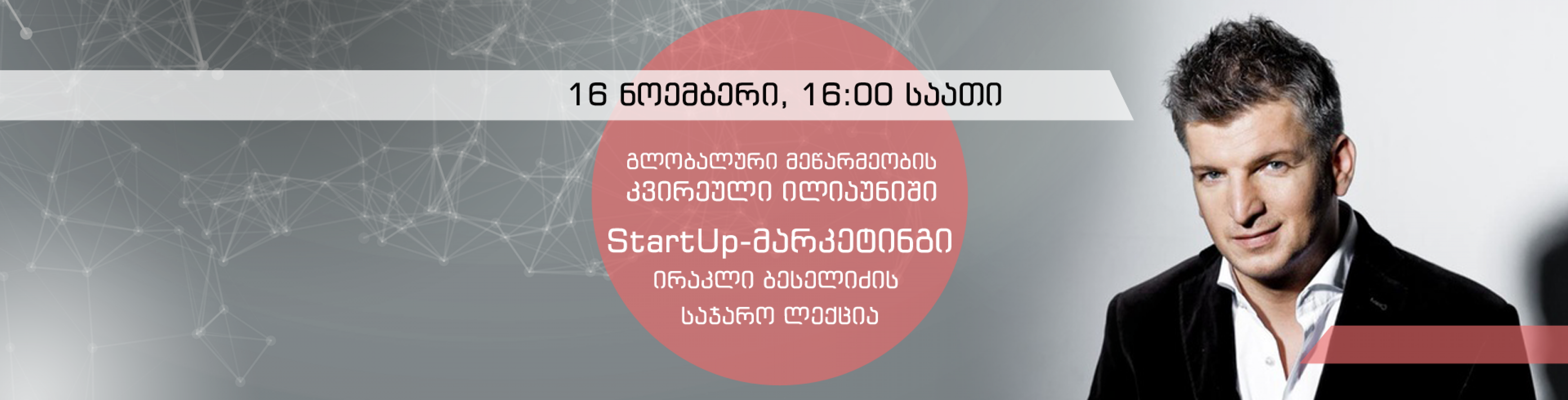 16 ნოემბერს, 16:00 საათზე, ილიას სახელმწიფო უნივერსიტეტის G106 აუდიტორიაში, გლობალური მეწარმეობის კვირეულის ფარგლებში, საჯარო ლექციას წაიკითხავს მეწარმე და მარკეტერი, ირაკლი ბესელიძე.