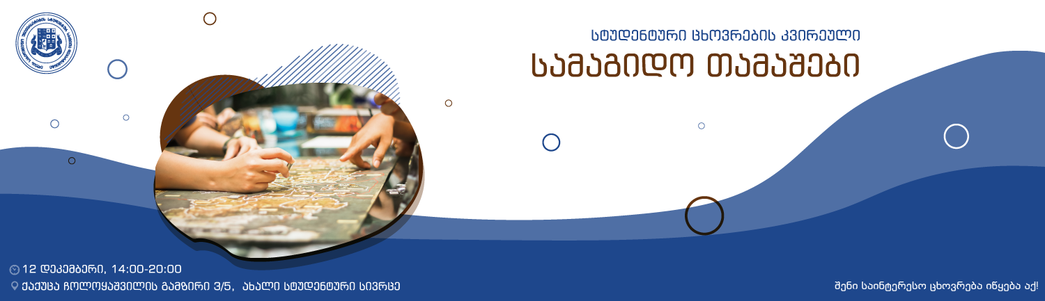 სტუდენტური ცხოვრების კვირეულის ფარგლებში 12 დეკემბერს, 14:00-20:00 საათზე, ნებისმიერ სტუდენტს შეეძლება ილიაუნიში მოსვლა და დროის სასიამოვნოდ გატარება. სტუდენტები მიიღებენ ინფორმაციას იმის შესახებ, თუ როგორ ავითარებს სამაგიდო