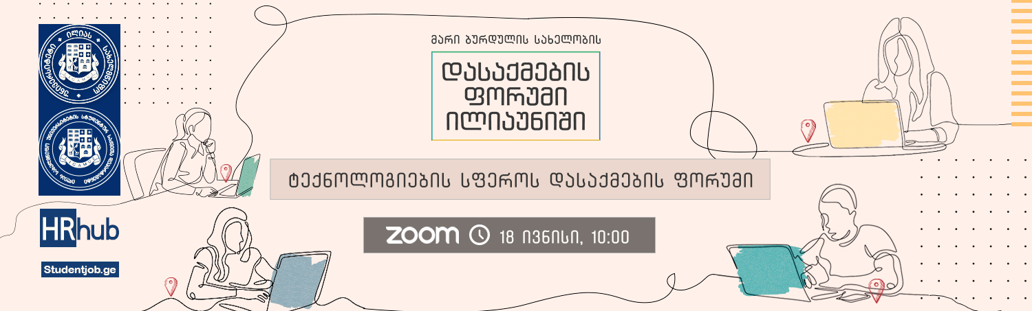 18 ივნისს, პარასკევს,10:00-დან 16:00 საათის ჩათვლით, მარი ბურდულის სახელობის დასაქმების ფორუმის ფარგლებში გაიმართება ტექნოლოგიების სფეროს დამსაქმებელთა შეხვედრები ილიაუნის სტუდენტებსა და კურსდამთავრებულებთან.