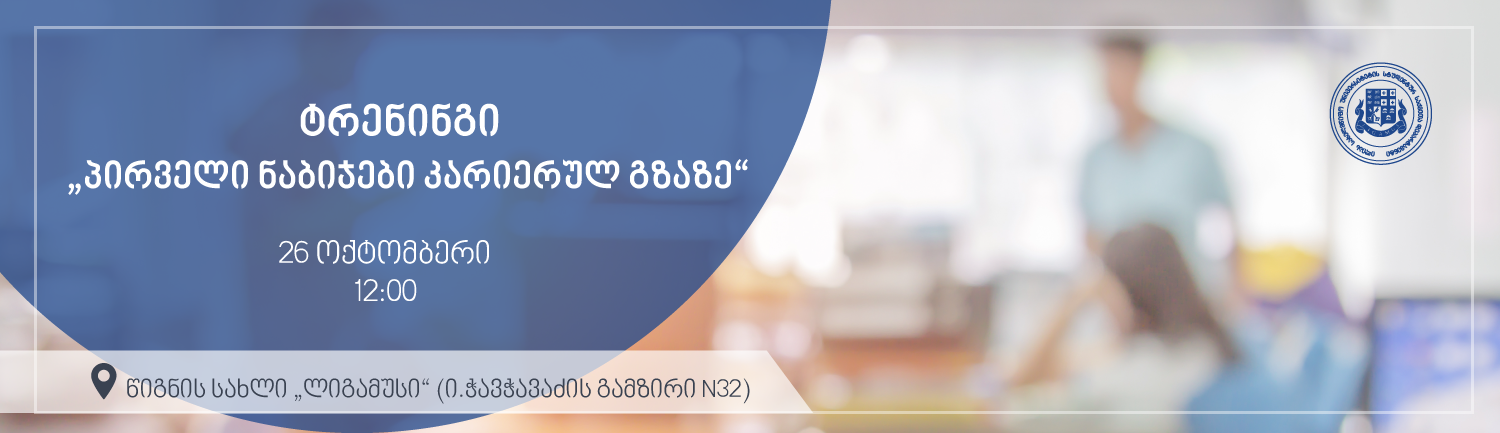 26 ოქტომბერს, 12:00 საათზე, ილიას სახელმწიფო უნვიერსიტეტის წიგნის სახლში „ლიგამუსი“ სტუდენტური ცხოვრების კვირეულის ფარგლებში ილიაუნის აკადემიური წერის ცენტრის ლექტორი მაკა პატარიძე ჩაატარებს ტრენინგს თემაზე: „პირველი ნაბიჯები კარიერულ გზაზე”.