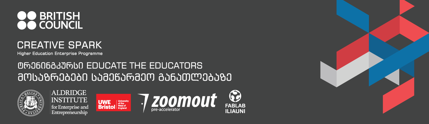 ტრენინგკურსი Educate the Educators განკუთვნილია სხვადასხვა დისციპლინის აკადემიური პერსონალისთვის, რათა მათ შეძლონ სამეწარმეო სწავლების სასწავლო კურიკულუმებში დანერგვა. კურსის ფარგლებში მონაწილეებს საშუალება მიეცემათ, გაიზიარონ ბრიტანეთის წამყვანი უნივერსიტეტების საუკეთესო პრაქტიკა და მიიღონ პრაქტიკული რჩევები.